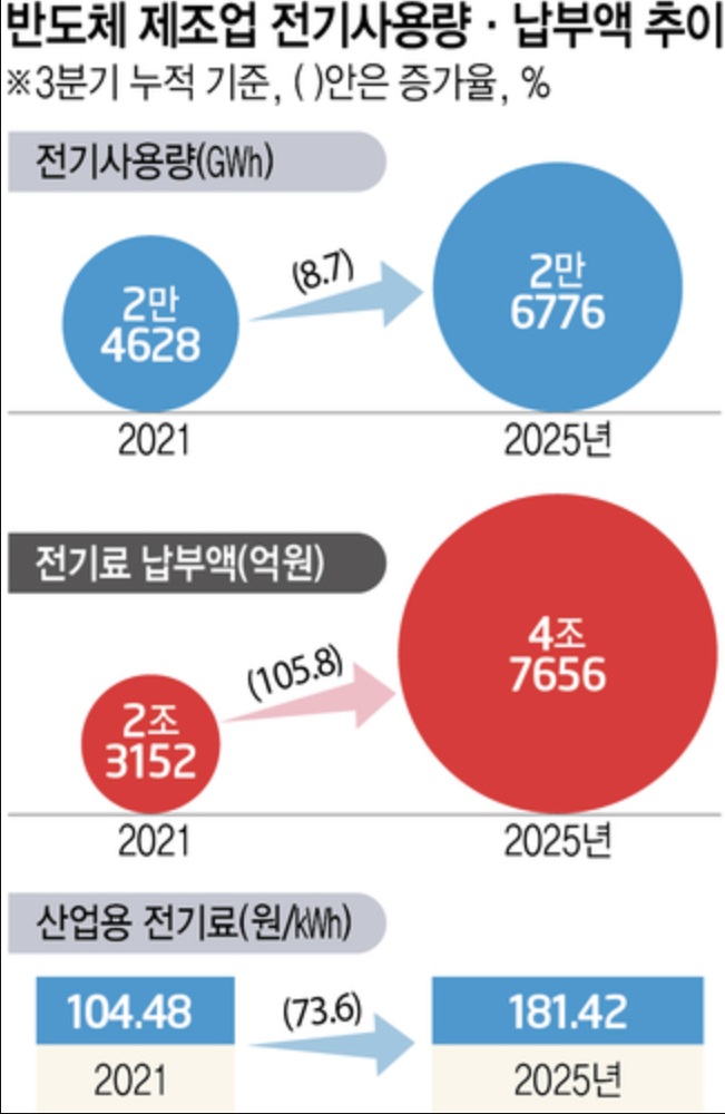 | 2021년부터 2025년 9월까지 산업용 전기 요금 등락율 |